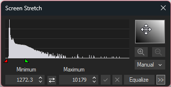 When using manual stretch, you can also zoom in on the histogram. Adjust the green and red carets, then click the