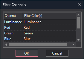 Click the FILTER button to set up the filter mapping. This will determine what filters are mapped into which LRGB color channels. To change a row, click once on the row, then click once on the Filter Color item, and enter a new value. This will make sure that your filters are automatically assigned to the correct group.