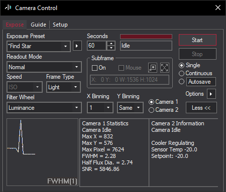 Click Expose and an image will appear. If you like you can save the image to disk.
