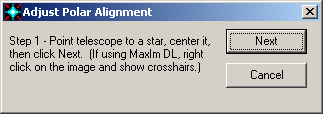Next, click the Polar Align button. The Adjust Polar Alignment wizard will appear.